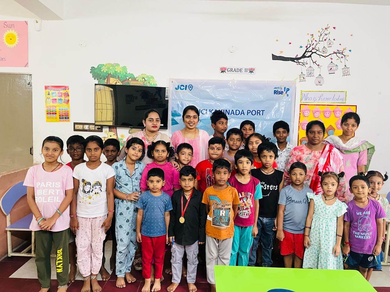JCI Kakinada Port launched the CHAMPIONS Personality Development Program at Skylark Global School, Jagannaickpur, for children aged 5 to 12. Held from 9 AM to 12 Noon, the program focused on building confidence, discipline, communication, and positive behavior in young minds.